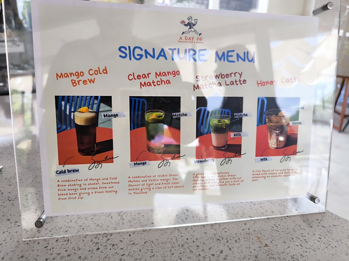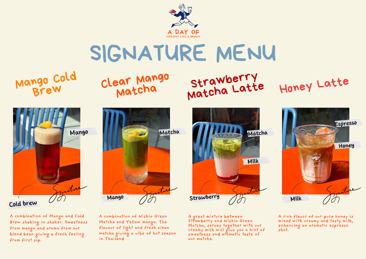 A DAY OF cafe/คาเฟ่ is a hidden gem nestled in the heart of Bangkok's Bang Khun Thian district. This charming cafe offers a delightful menu that perfectly blends comfort and creativity. Coffee enthusiasts can indulge in specialty brews like the Caramel Macchiato, Ume Plum Cold Brew, and the intriguing Yuzu Espresso. Matcha lovers will relish the Strawberry Matcha Latte and Clear Mango Matcha, both crafted to elevate the palate.